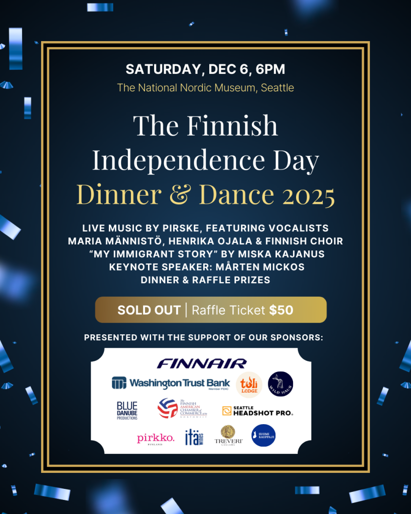 Finlandia Foundation Seattle Chapter is a volunteer-based 501(c)(3) non-profit organization registered in the state of Washington. Donations are tax deductible to the extent allowable by law.
